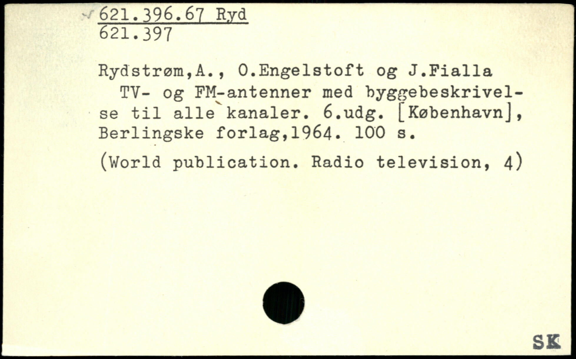 Rydstrøm,A., 0.Engelstoft og J.Fialla TY- og FM-antenner med hyggebeskrivelse til alle kanaler.