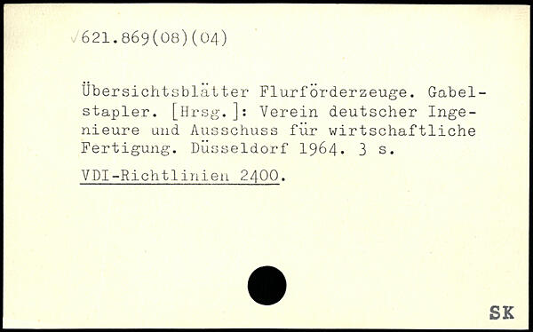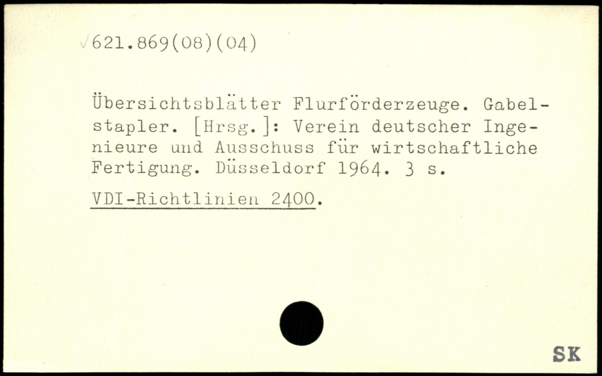 Übersichtsblatter Flurförderzeuge. Gabelstapler. [Hrsg.]: Verein deutscher Ingenieure und Ausschuss für wirtschaftliche Fertigung. Düsseldorf 1964.