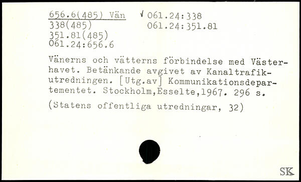 Vänerns och vatterns förbindelse med Västerhavet. Betänkande avgivet av Kanaltrafik-utredningen. [Utg.av] Kommunikationsdepartementet.