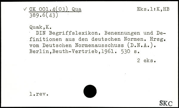 DIN Begriffslexikon. Benennungen und Definitionen aus den deutschen Normen. Hrsg, vom Deutschen Normenausschuss (D.N.A.).