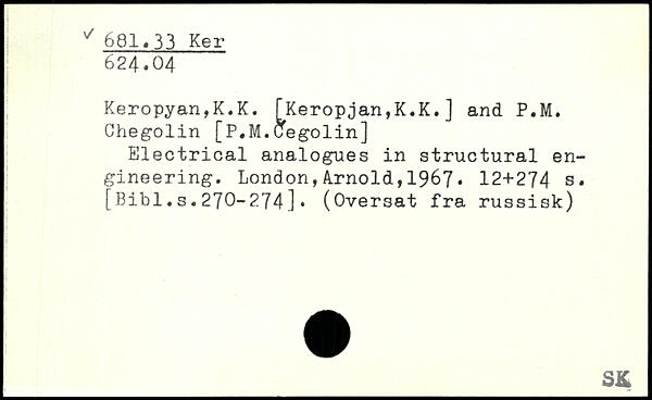 Keropyan,K.K. [Keropjan,K.K.] and P.M. Chegolin [P.M.Cegolin] Electrical analogues in structural engineering.