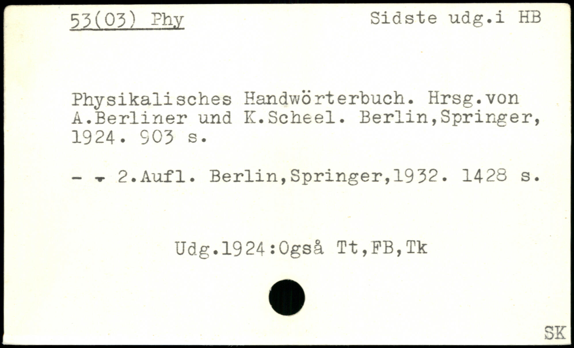 Physikalisches Handwörterbuch. Hrsg.von A.Berliner und IC.Scheel.