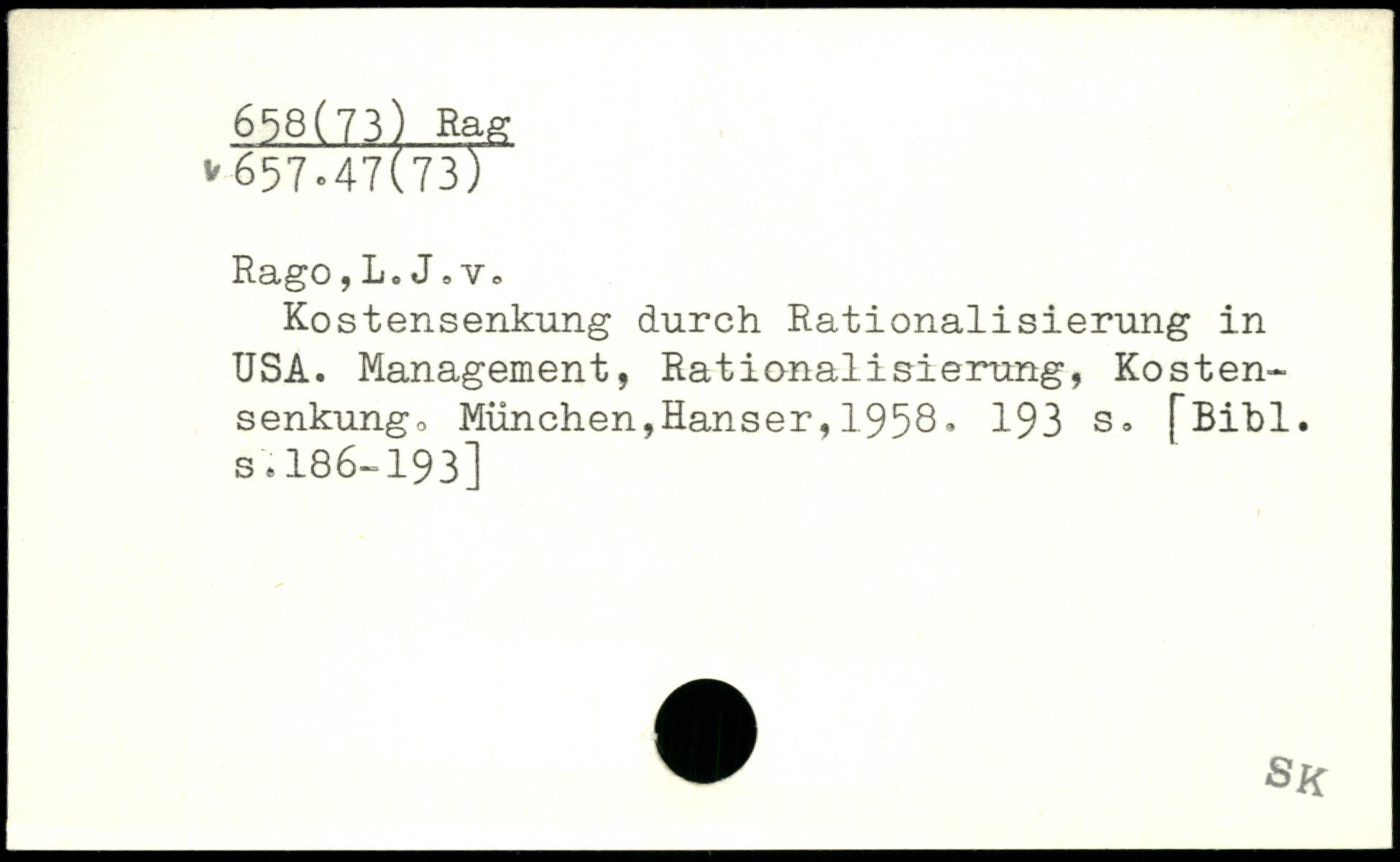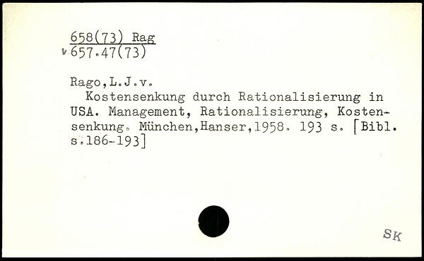 Rago,L.J,Vo Kostensenkung durch Rationalisierung in USA.