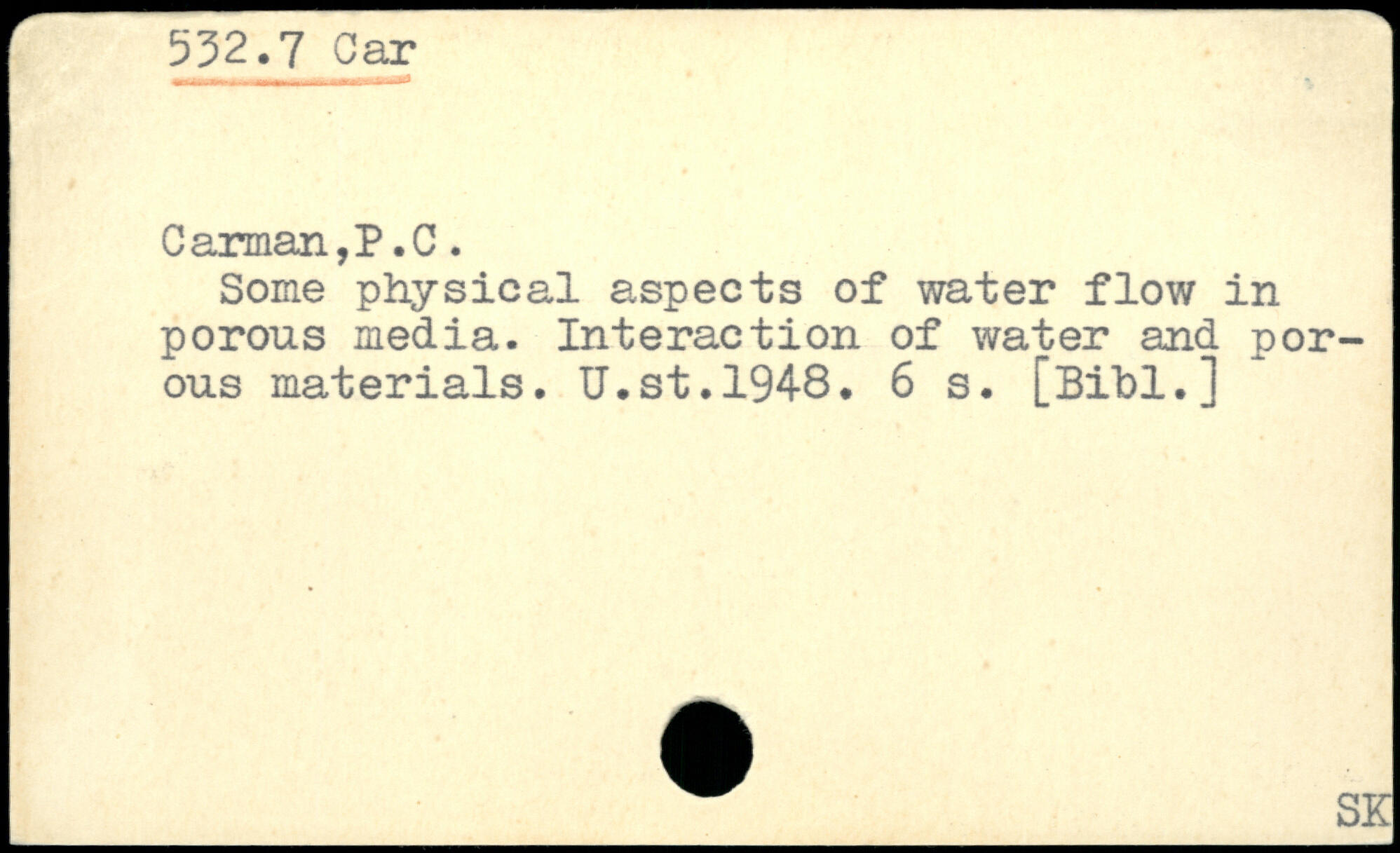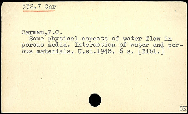Some physical aspects of water flow in porous media. Interaction of water and porous materials. U.st.1948.