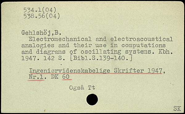 Electromechanical and electroacoustical analogies and their use in computations and diagrams of oscillating systems. Kbh. 1947.