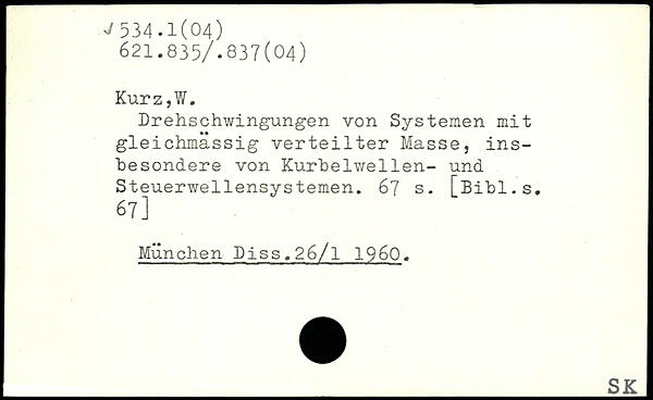 Drehschwingungen von Systemen mit i gleichmässig verteilter Masse, insbesondere von Kurbelwellen- und Steuerwellensystemen.