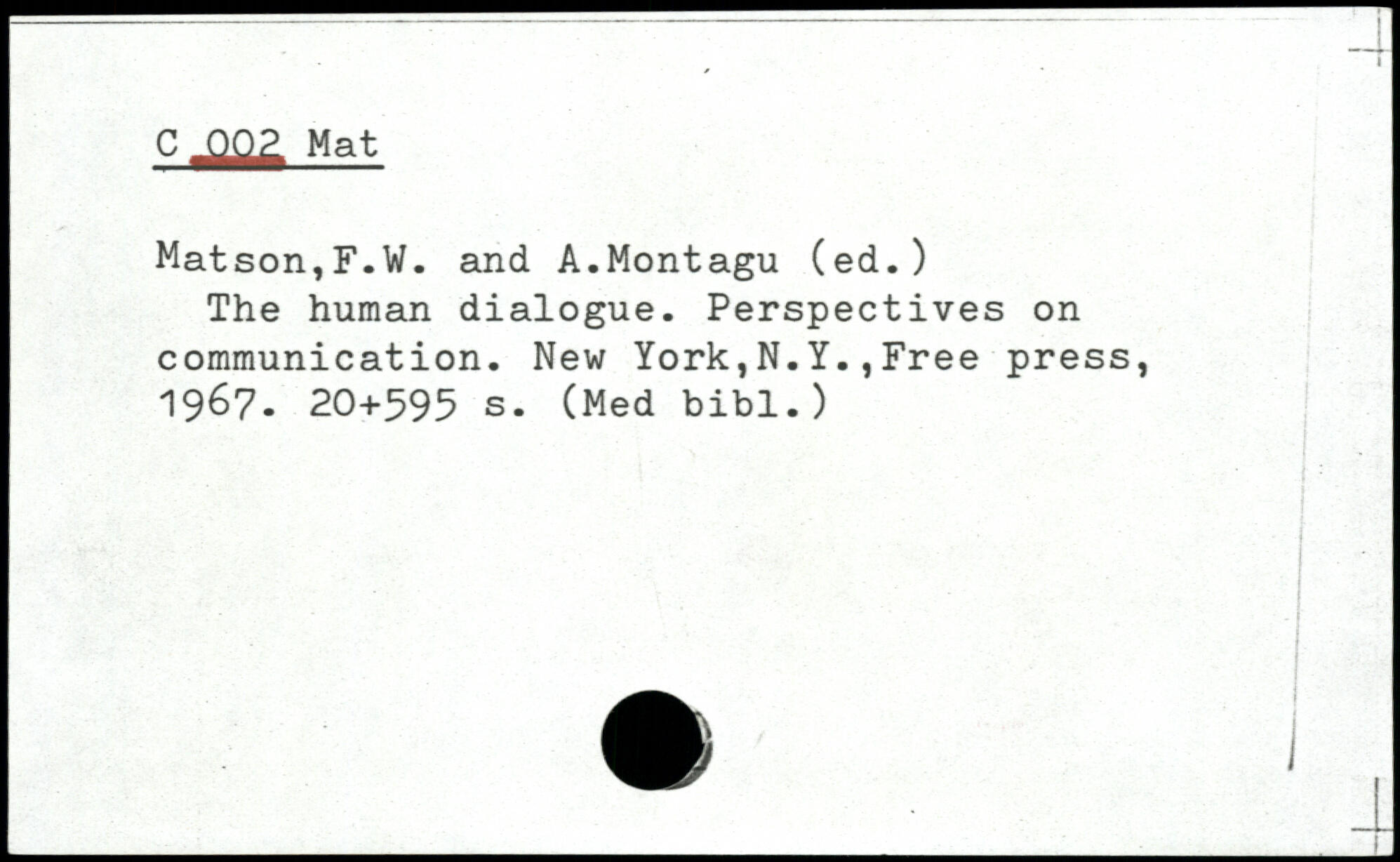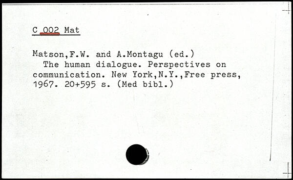 The human dialogue. Perspectives on communication.