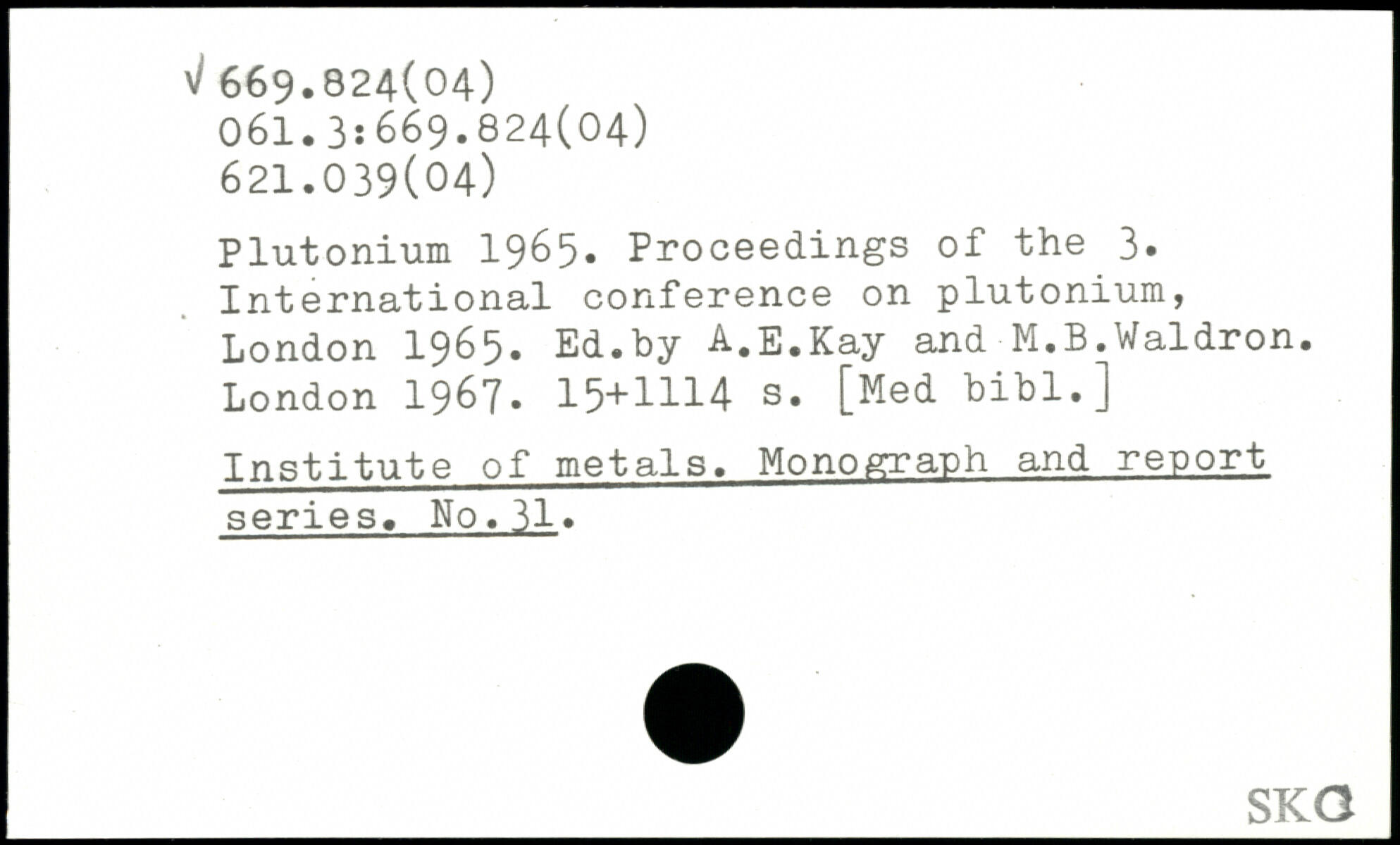 Plutonium 1965. Proceedings of the 3. International conference on plutonium