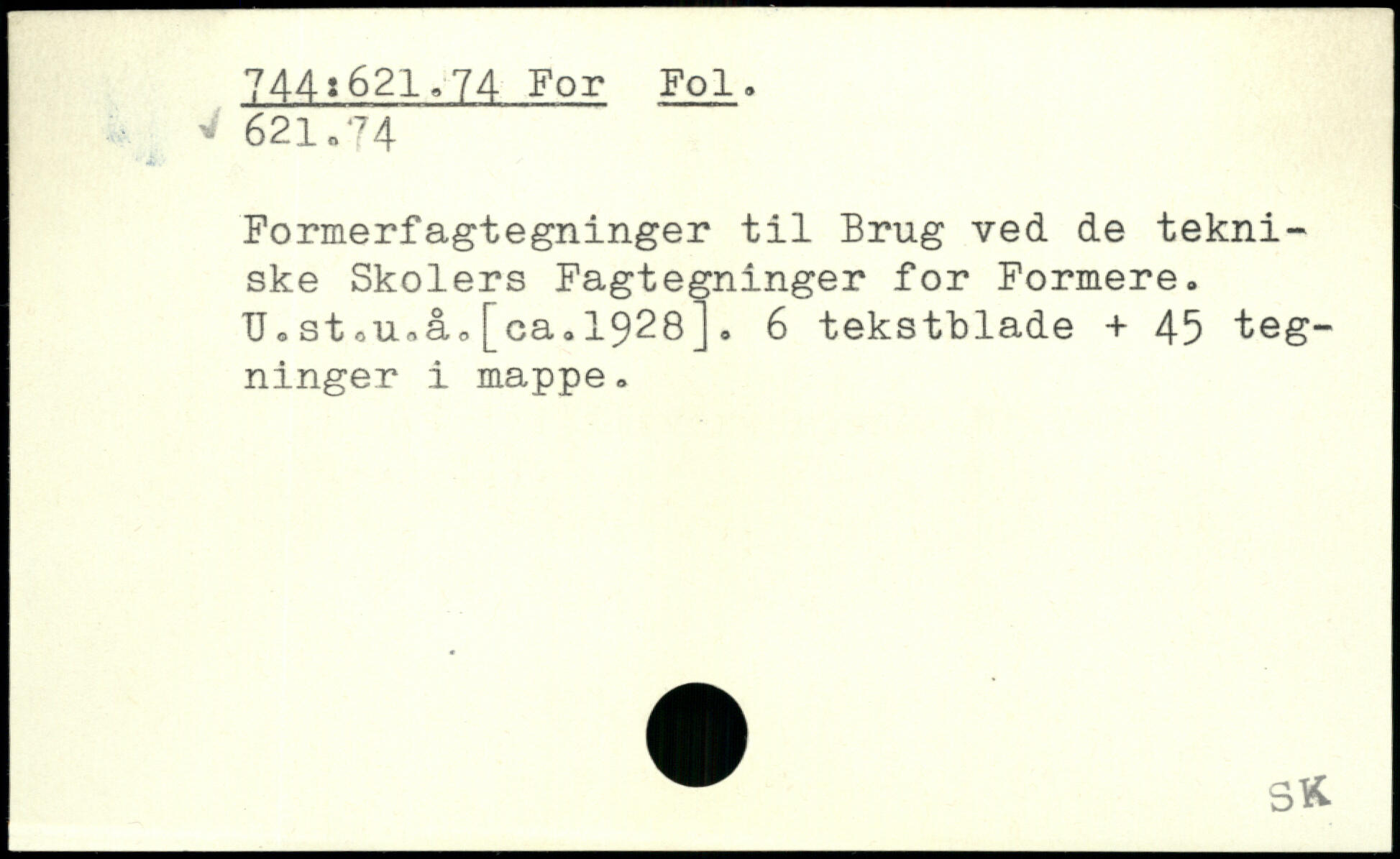 Formerfagtegninger til Brug ved de tekniske Skolers Fagtegninger for Formere. U. stoU.å. [ca.1928]. 6 tekstblade + 45 "tegninger i mappe.