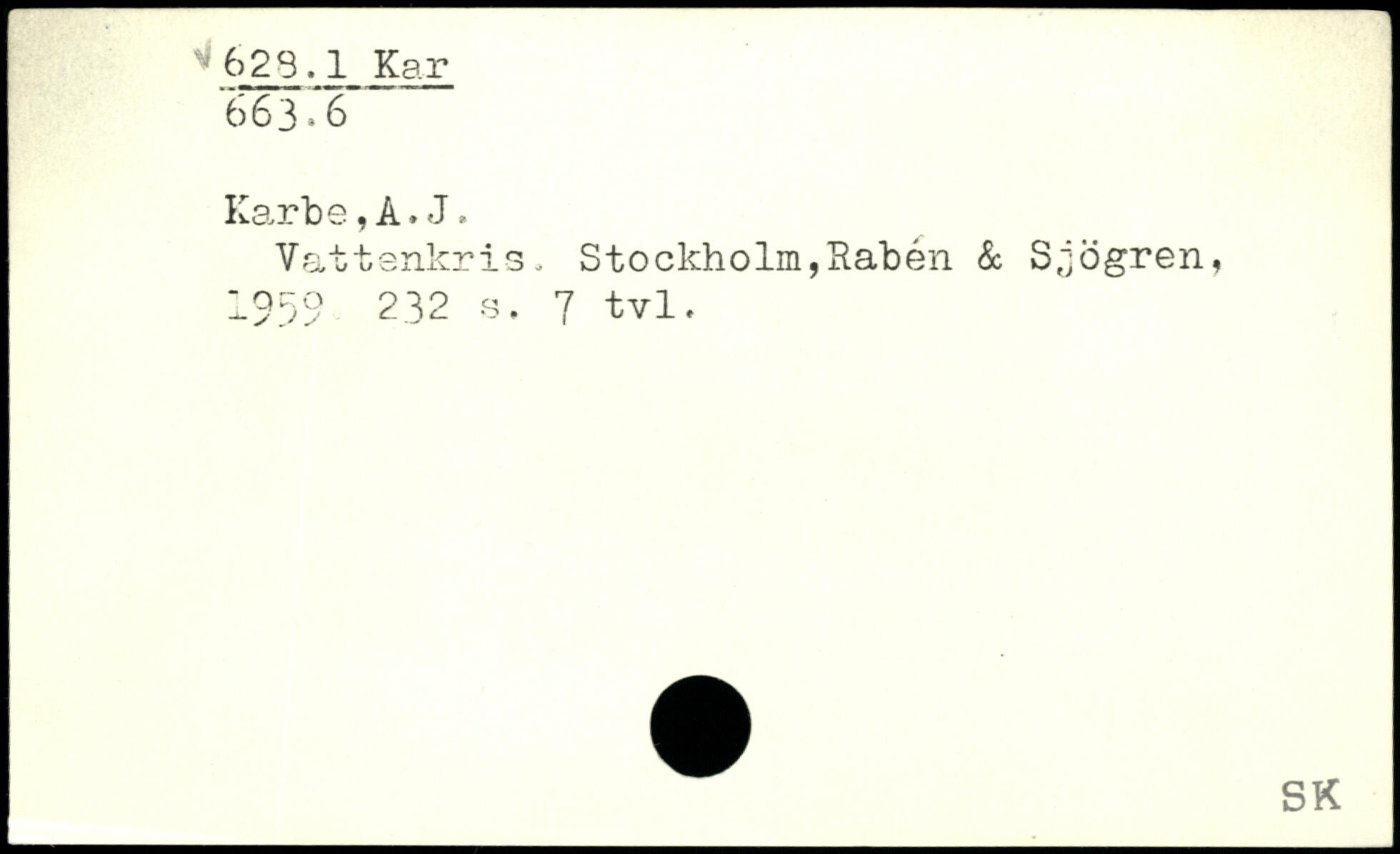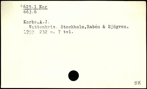 Vattenkris o Stockholm,Rabén & Sjögren, 1959 232 9. 7 tvl.