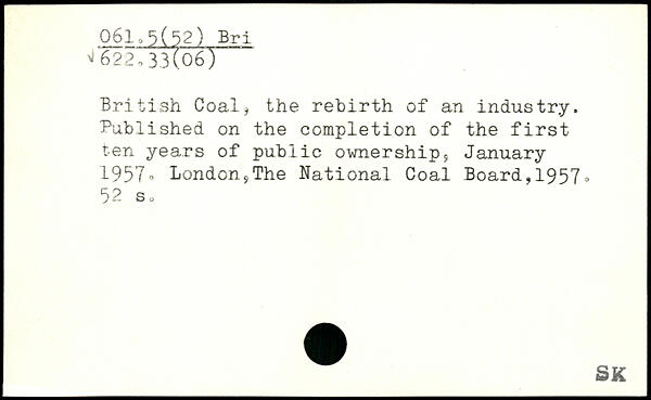 British Coal, the rebirth of an industry. Published on the completion of the first ten years of public ownership, January 1957'.