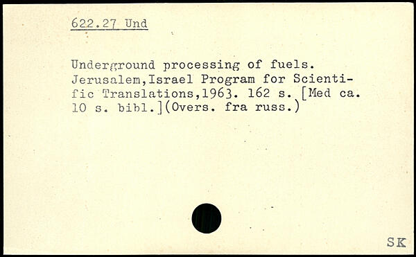 Underground processing of fuels. Jerusalem,Israel Program for Scientific Translations,1963.