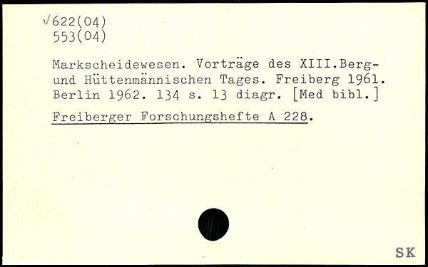 Markscheidewesen. Vorträge des XIII.Berg-und Huttenmannischen Tages. Freiberg 1961.