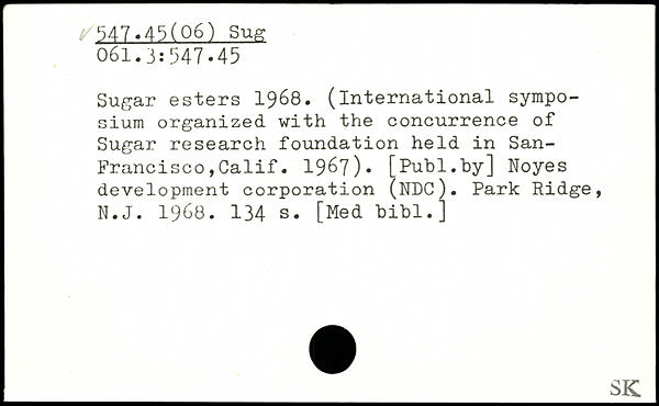 Sugar esters 1968. (international sympo-sium organized with the concurrence of Sugar research foundation held in San-Francisco,Calif. 1967)