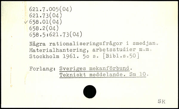 Några rationaliseringsfrågor i smedjan, Materialhantering, arhetsstudi er m.mo