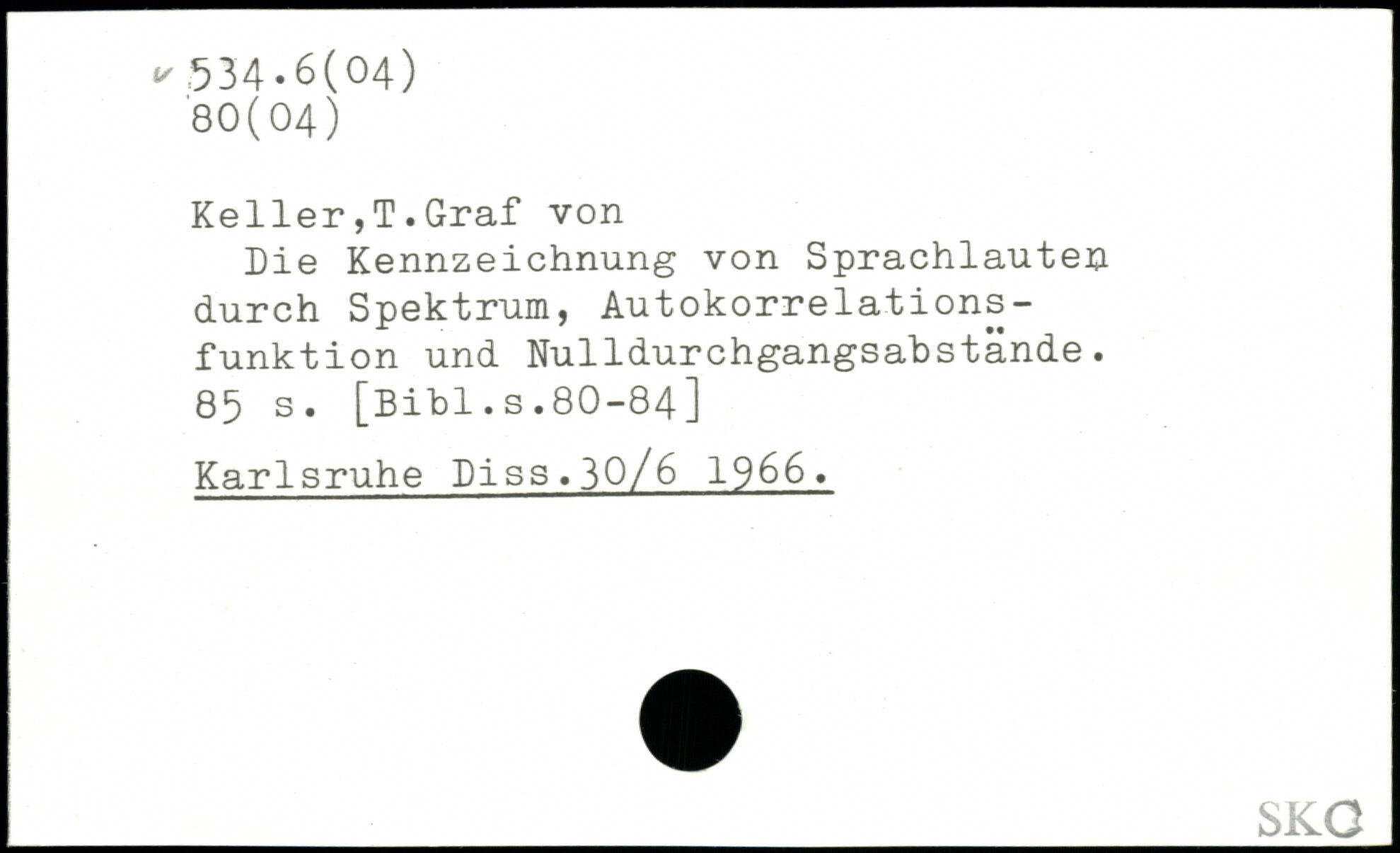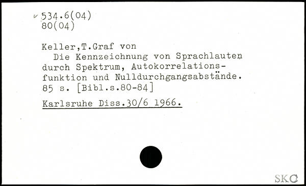 Keller,T.Graf von Die Kennzeichnung von Sprachlauten durch Spektrum, Autokorrelations-funktion und Nulldurchgangsabstände.