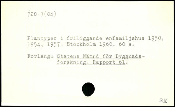 Plantyper i friliggande enfamiljshus 1950, 1954? 1957o