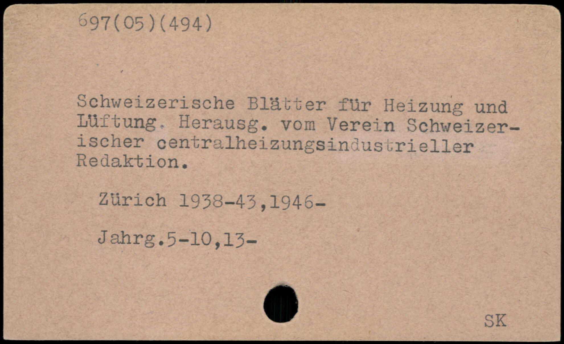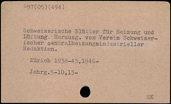 Schweizerische Blätter für Heizung und Lüftung, Herausg. vom herein Schweizer— ischer centralheizungsindustrieller Redaktion. Zürich 1938-43,1946-Jahrg.5-10,13-