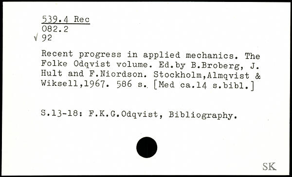 Recent progress in applied mechanics. The Folke Odqvist volume. Ed.hy B.Broberg, J. Hult and F.Niordson.