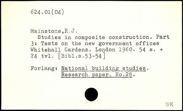 Studies in composite construction, Part 3: Tests on the new government offices Whitehall Gardens