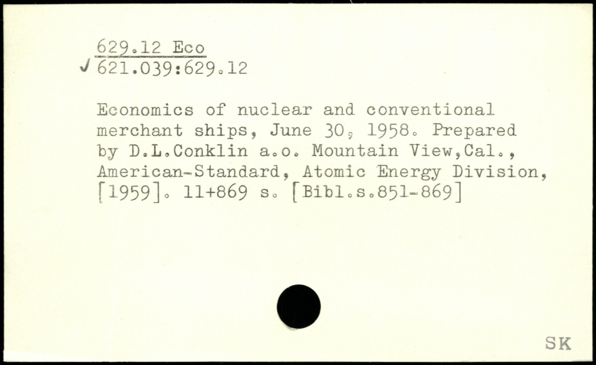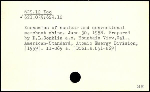 Economics of nuclear and conventional merchant ships, June 309 1958. Prepared by D.L.Conklin a.o. Mountain View,Cal., American-Standard, Atomic Energy Division,