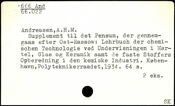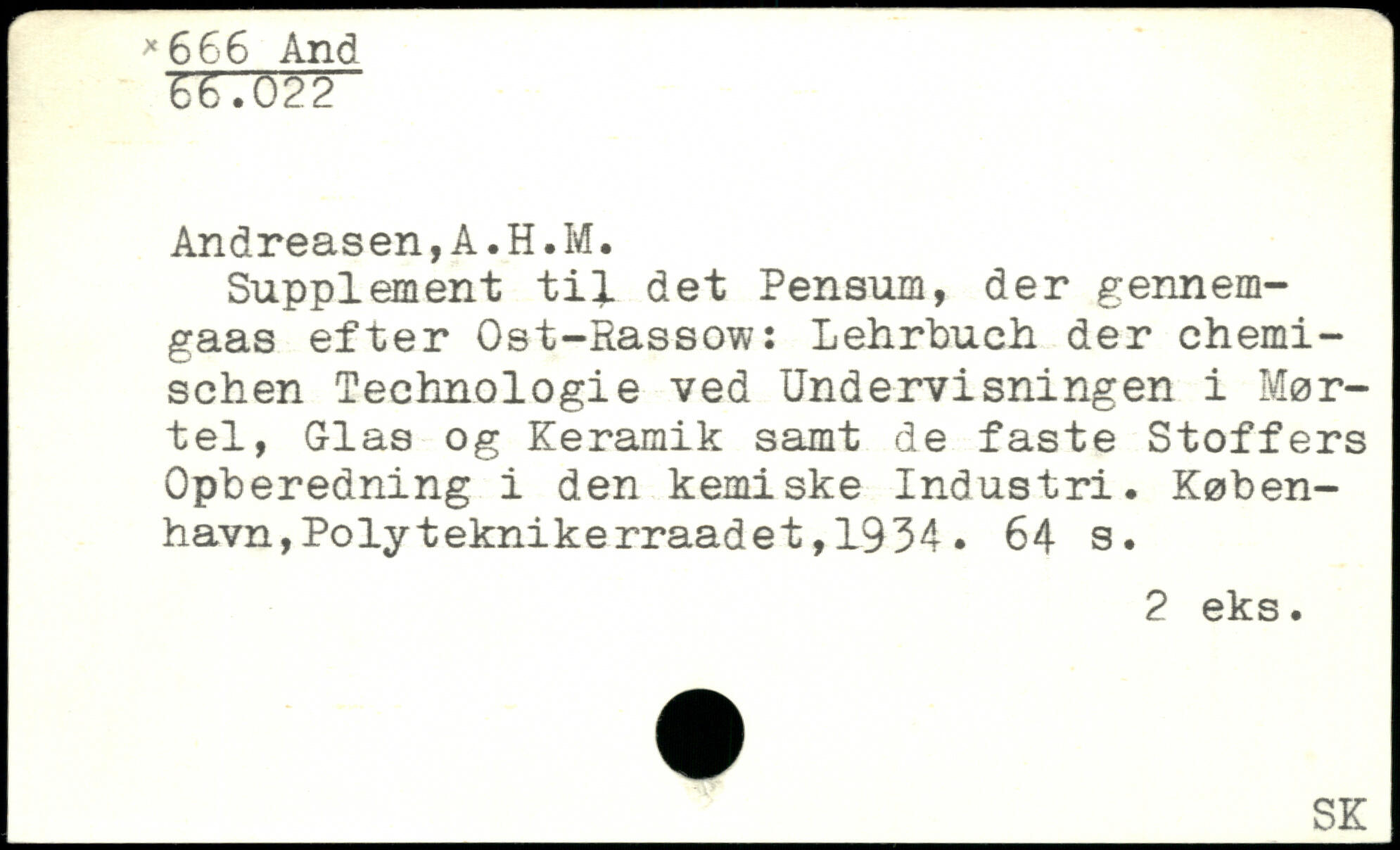 Supplement til det Pensum, der gennem-gaas efter Ost-Rassow: Lehrbuch der chemischen Technologie ved Undervisningen i Mørtel, Glas og Keramik samt de faste Stoffers Opberedning i den kemiske Industri.