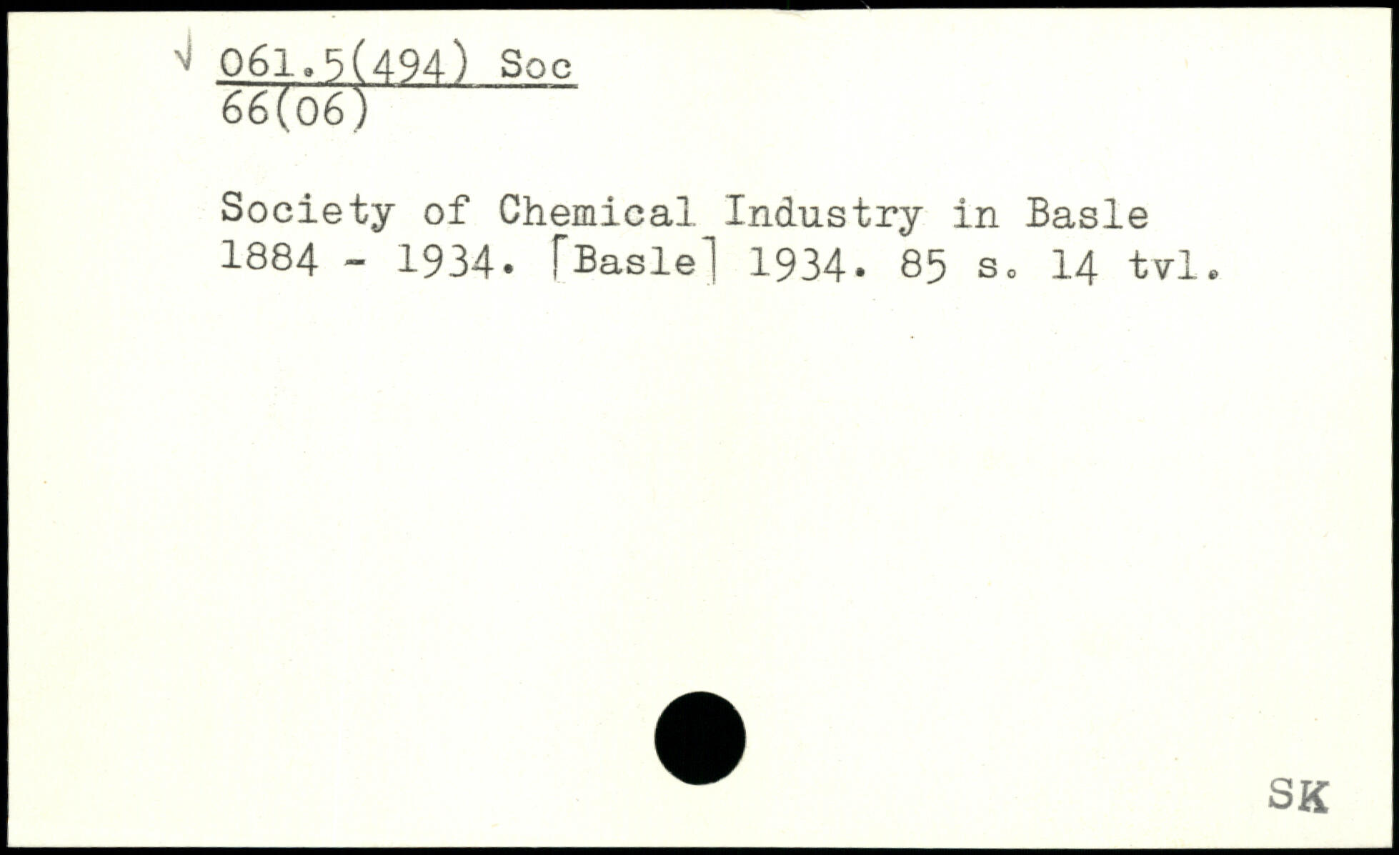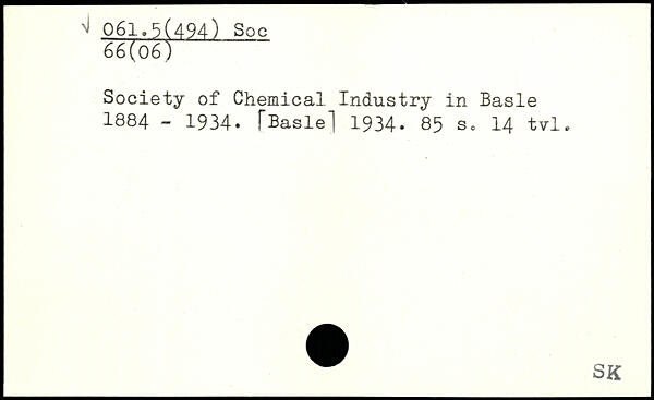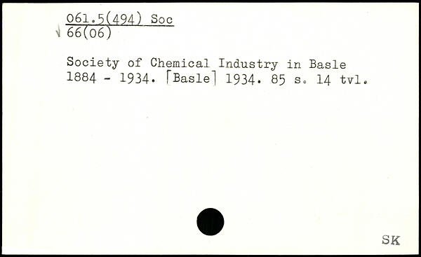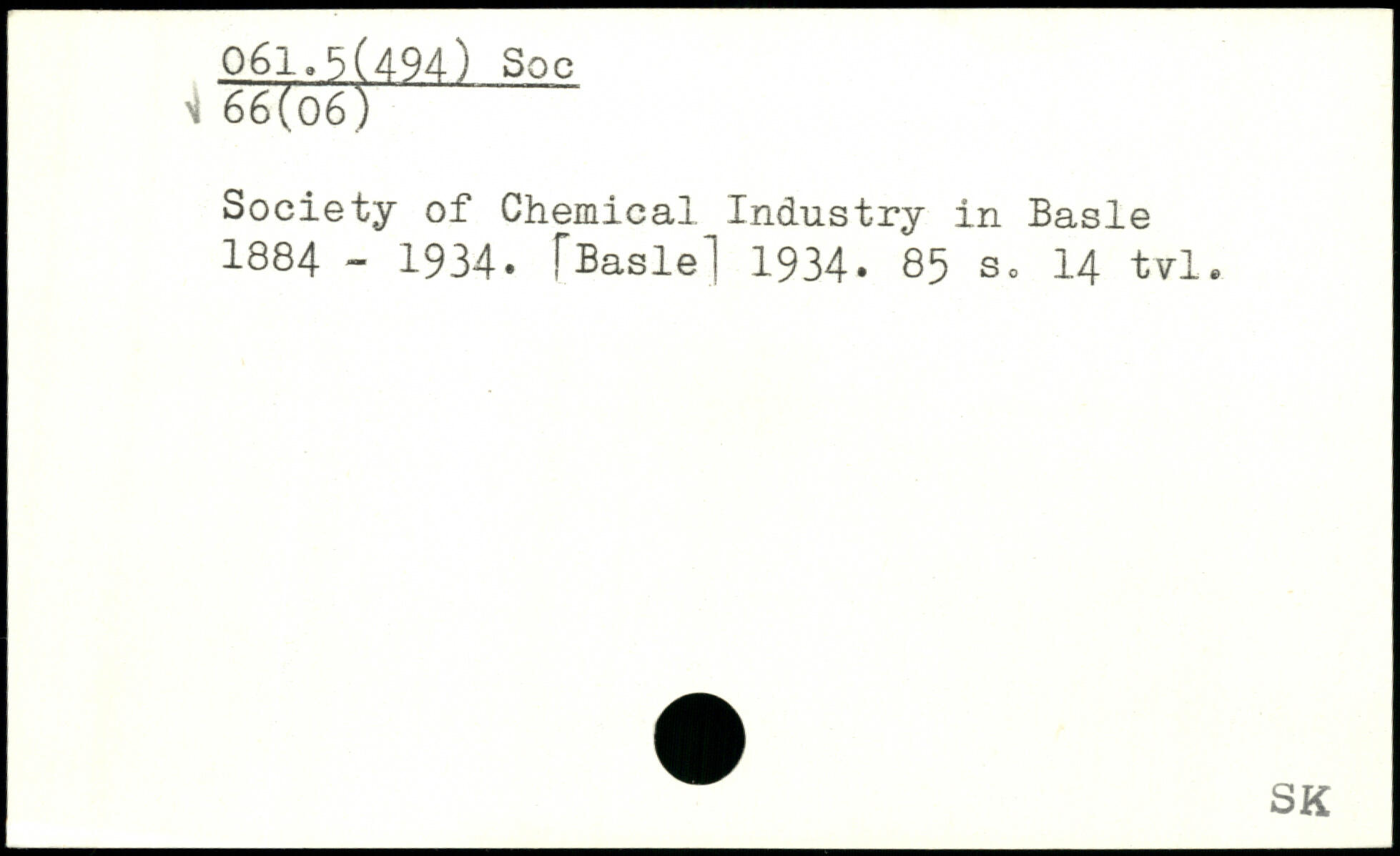 Society of Chemical Industry in Basle 1884 - 1934. [Basle! 1934.