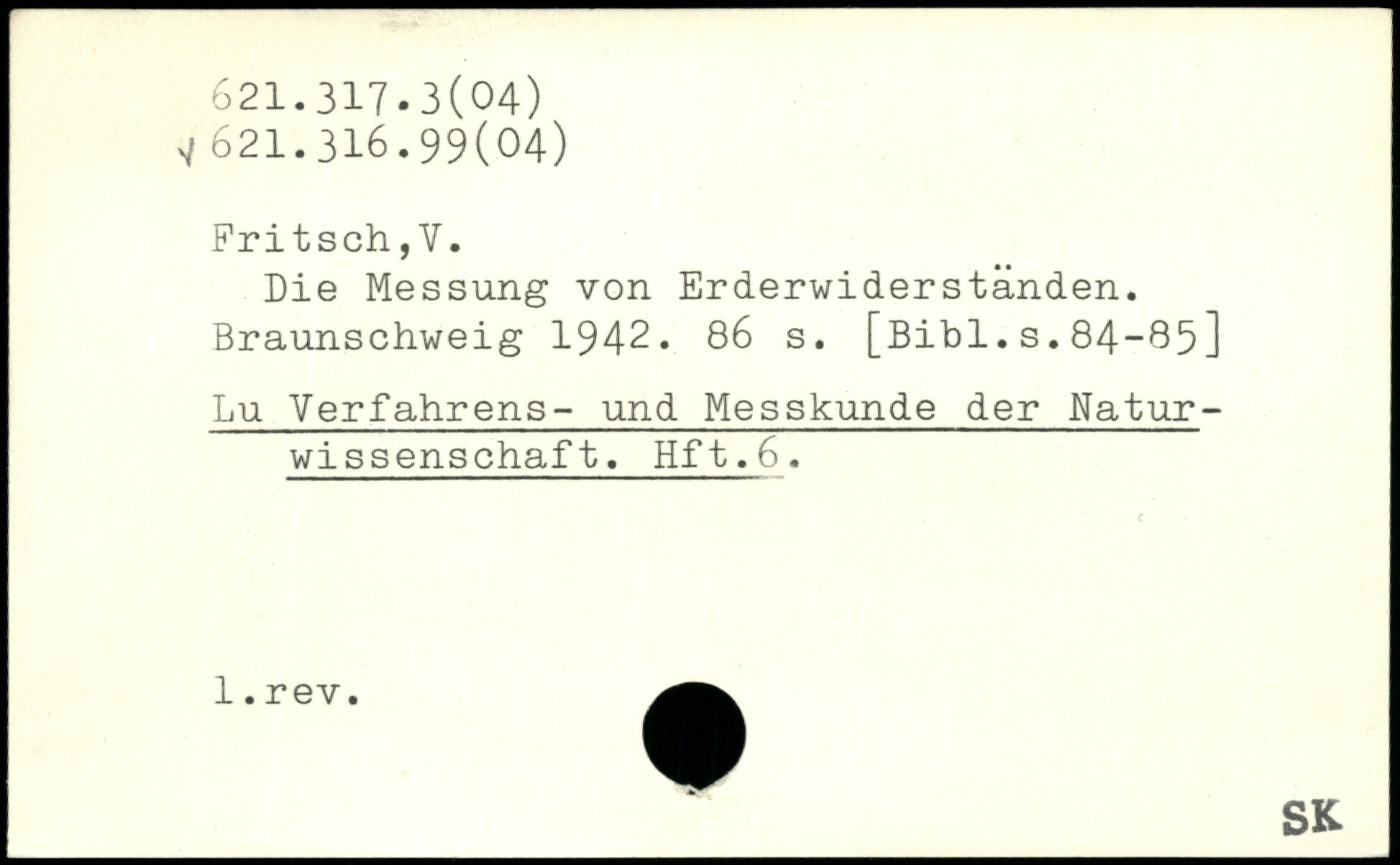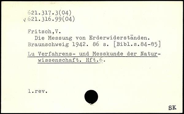 Die Messung von Erderwiderständen. Braunschweig 1942.