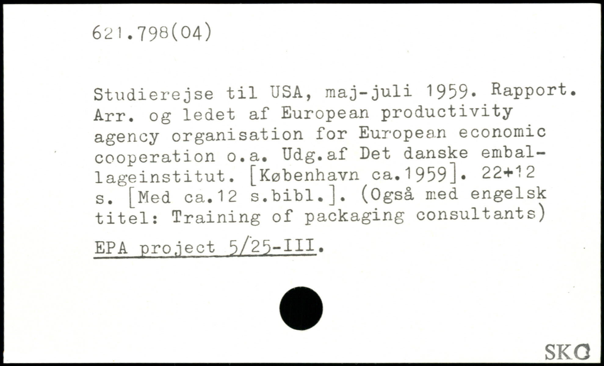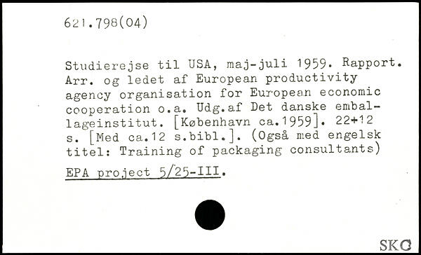 Studierejse til USA, maj-juli 1999. Rapport. Arr. og ledet af European productivity-agency organisation for European economic cooperation o.a. Udg.af Det danske embal— lageinstitut. [København ca.1959]