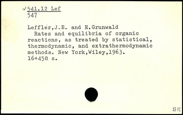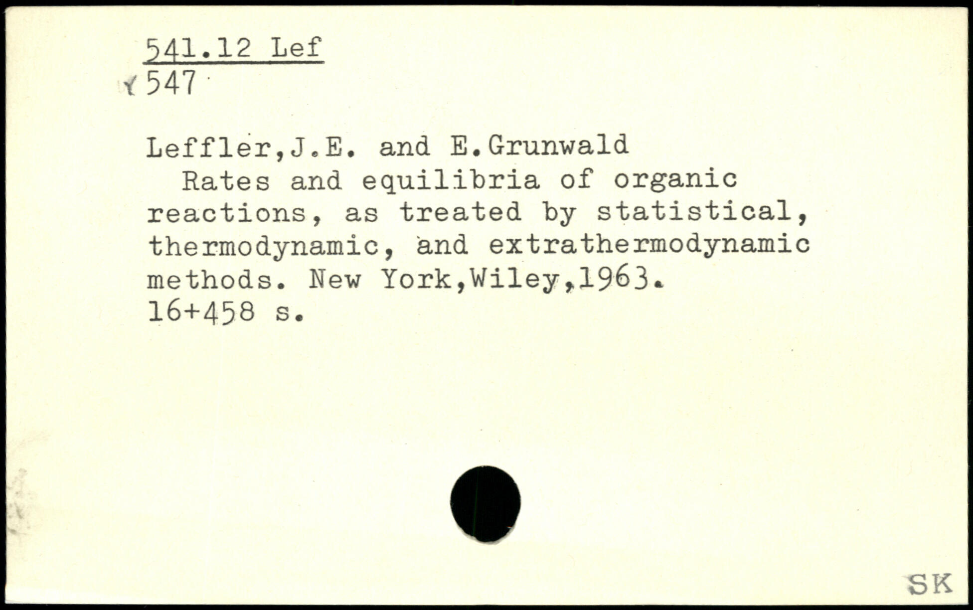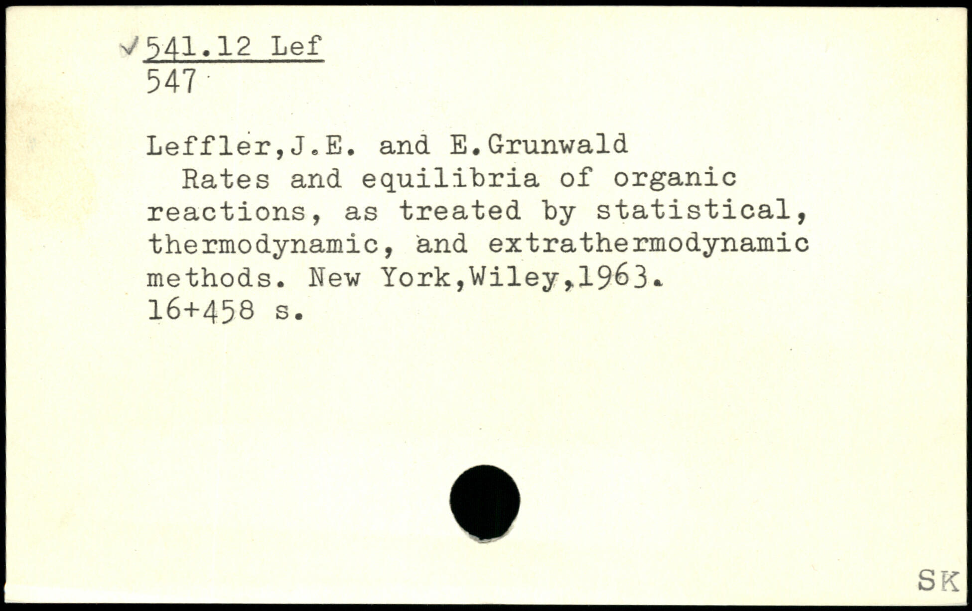 Rates and equilibria of organic reactions, as treated by statistical, thermodynamic, and extrathermodynamic methods.