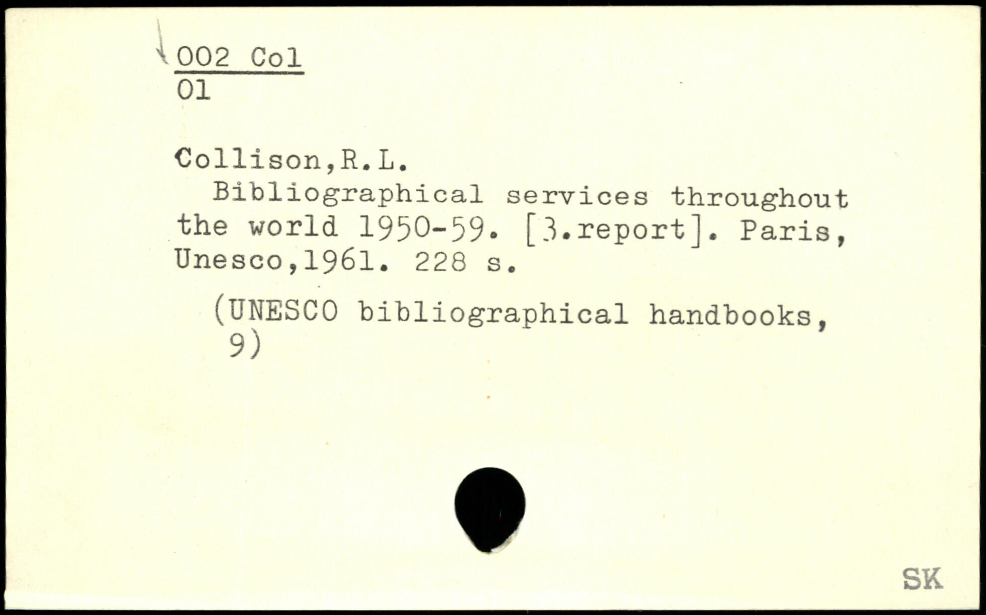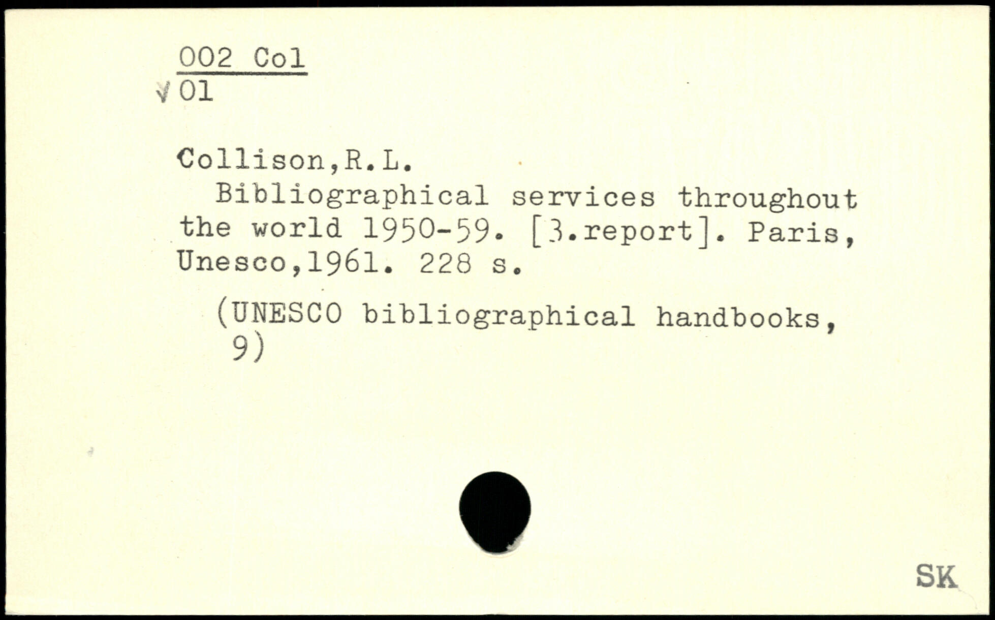 Collison,R.L. Bibliographical services throughout the world 1950-59- [3.report].