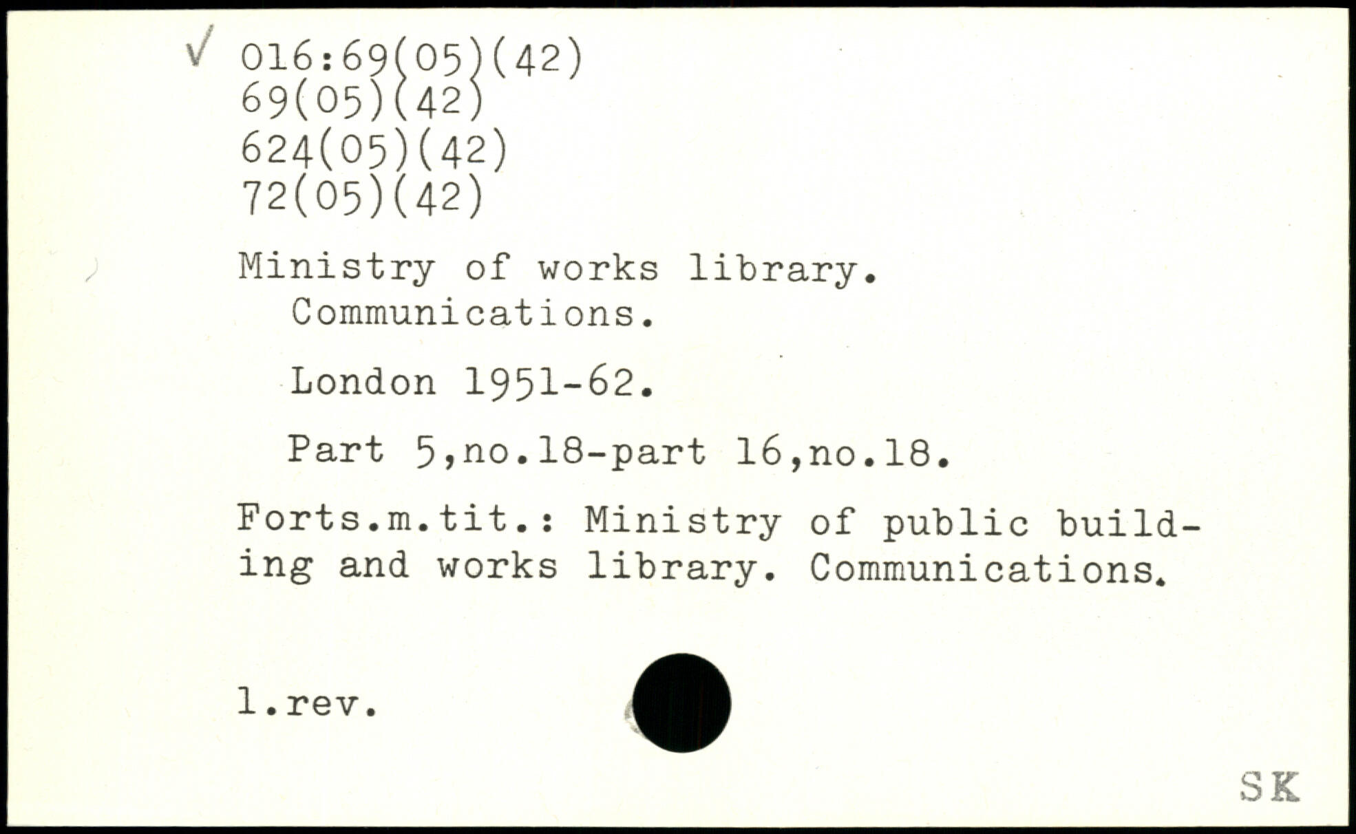 Ministry of works library. Communications.