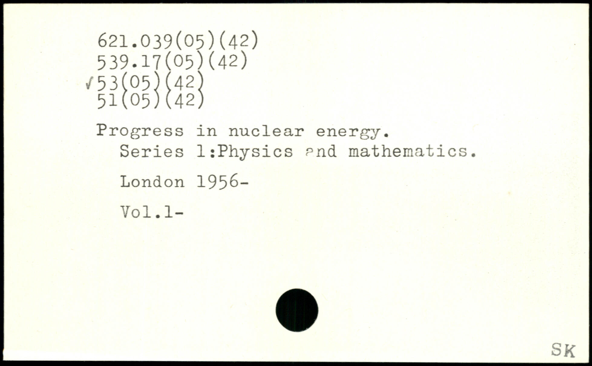 Progress in nuclear energy. Series IsPhysics pnd mathematics.