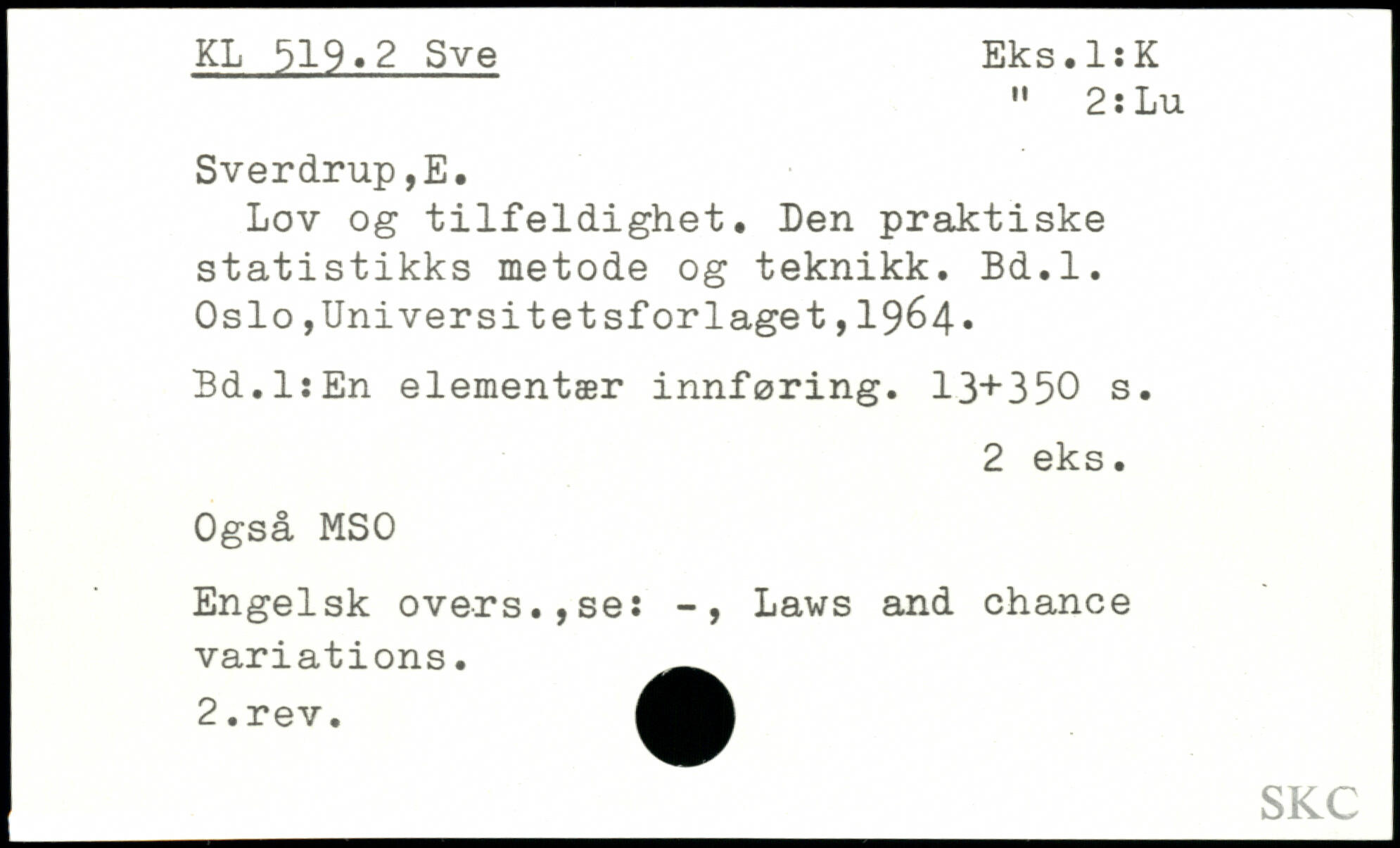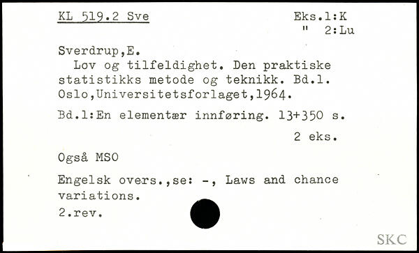 Lov og tilfeldighet. Len praktiske statistikks metode og teknikk. Bd.l.