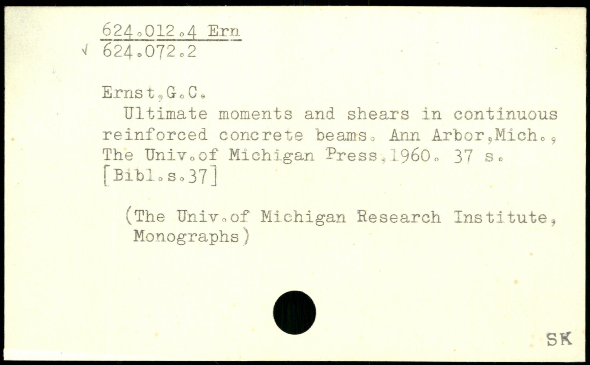 Ultimate moments and shears in continuous reinforced concrete beamso Ann Arbor,Micho, The Univ<>of Michigan Press, 19600