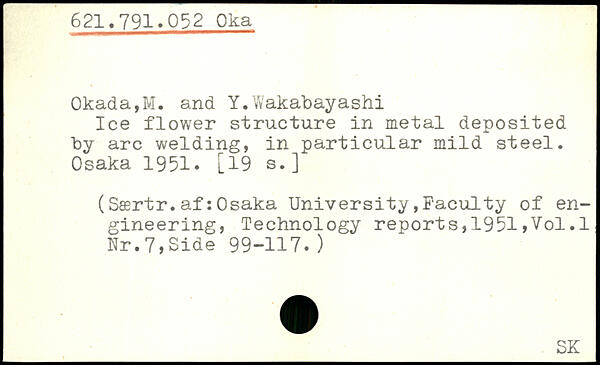 Ice flower structure in metal deposited by arc welding, in particular mild steel. Osaka 1951. [
