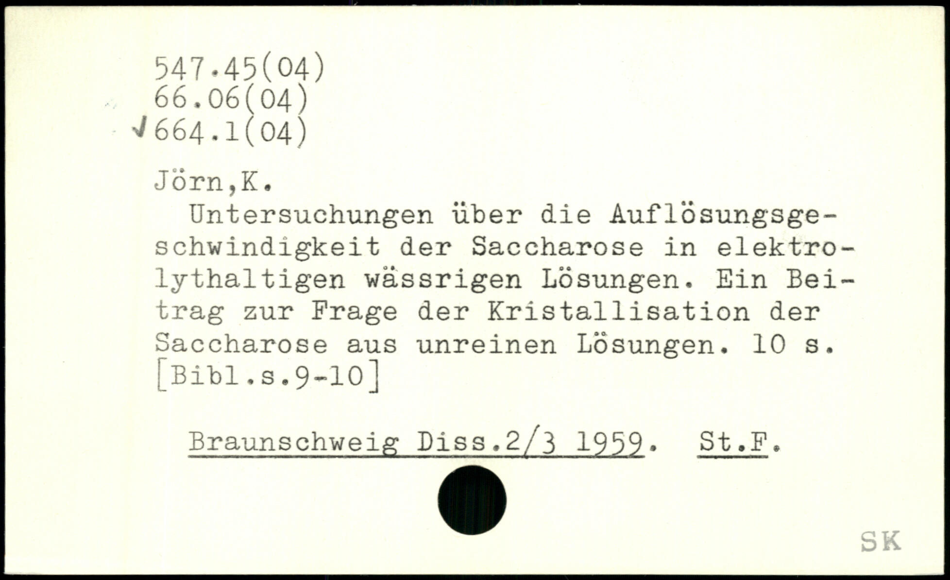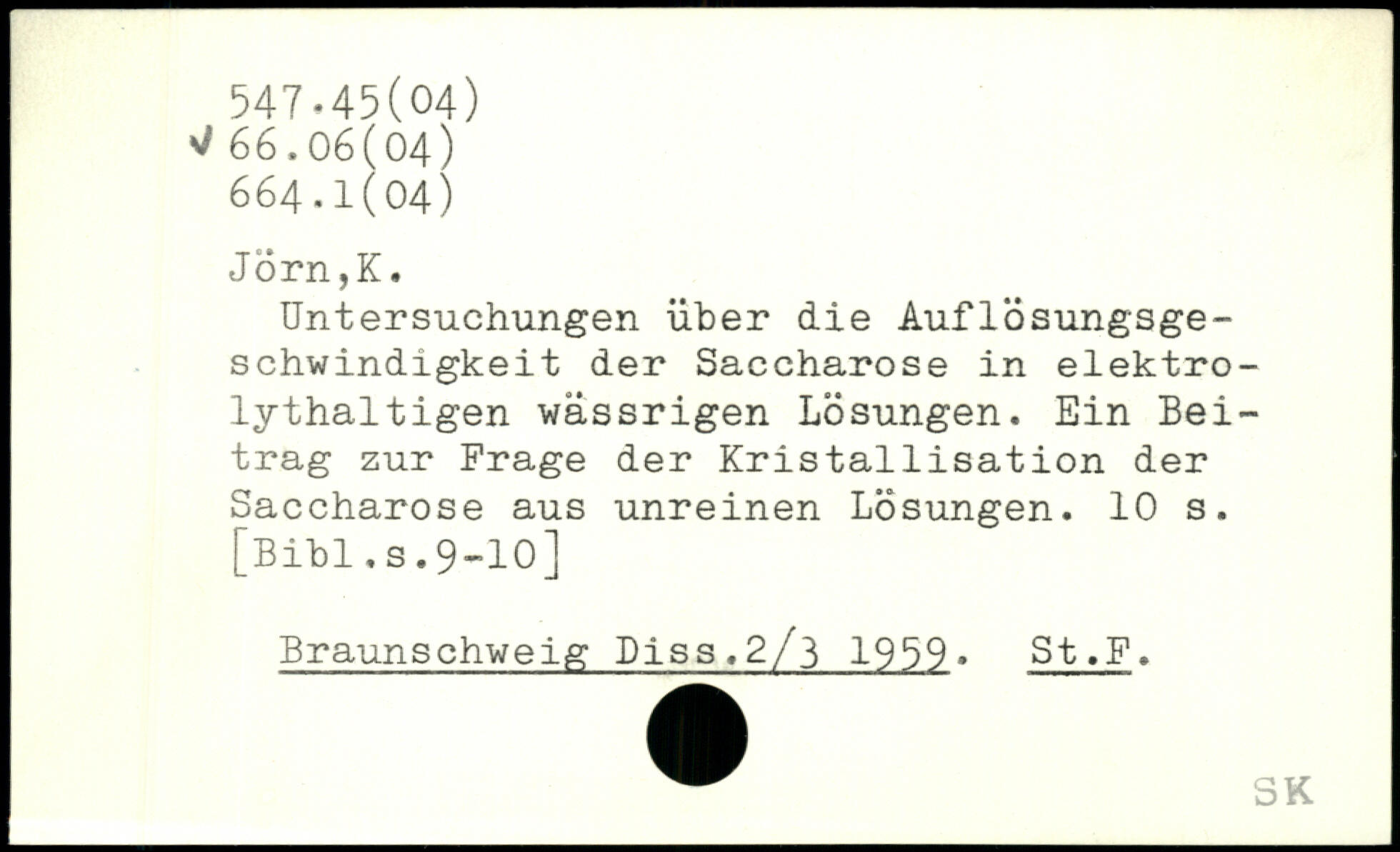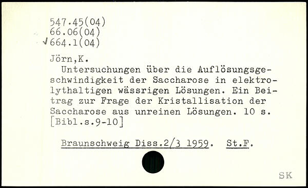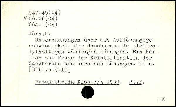 Untersuchungen über die Auflösungsge-schwindigkeit der Saccharose in elektrolythaltigen wässrigen Lösungen, Ein Beitrag zur Frage der Kristallisation der Saccharose aus unreinen Lösungen.