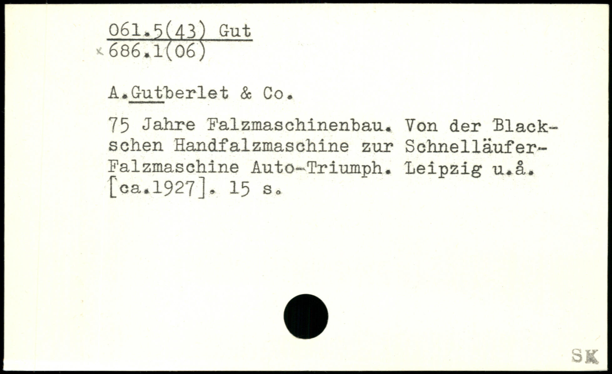 A.Gutberlet & Co. 75 Jahre Falzmaschinenbatu Von der Llack-schen Handfalzmaschine zur Schnellâufer-Falzmaschine Auto-Triumph. Leipzig tua.