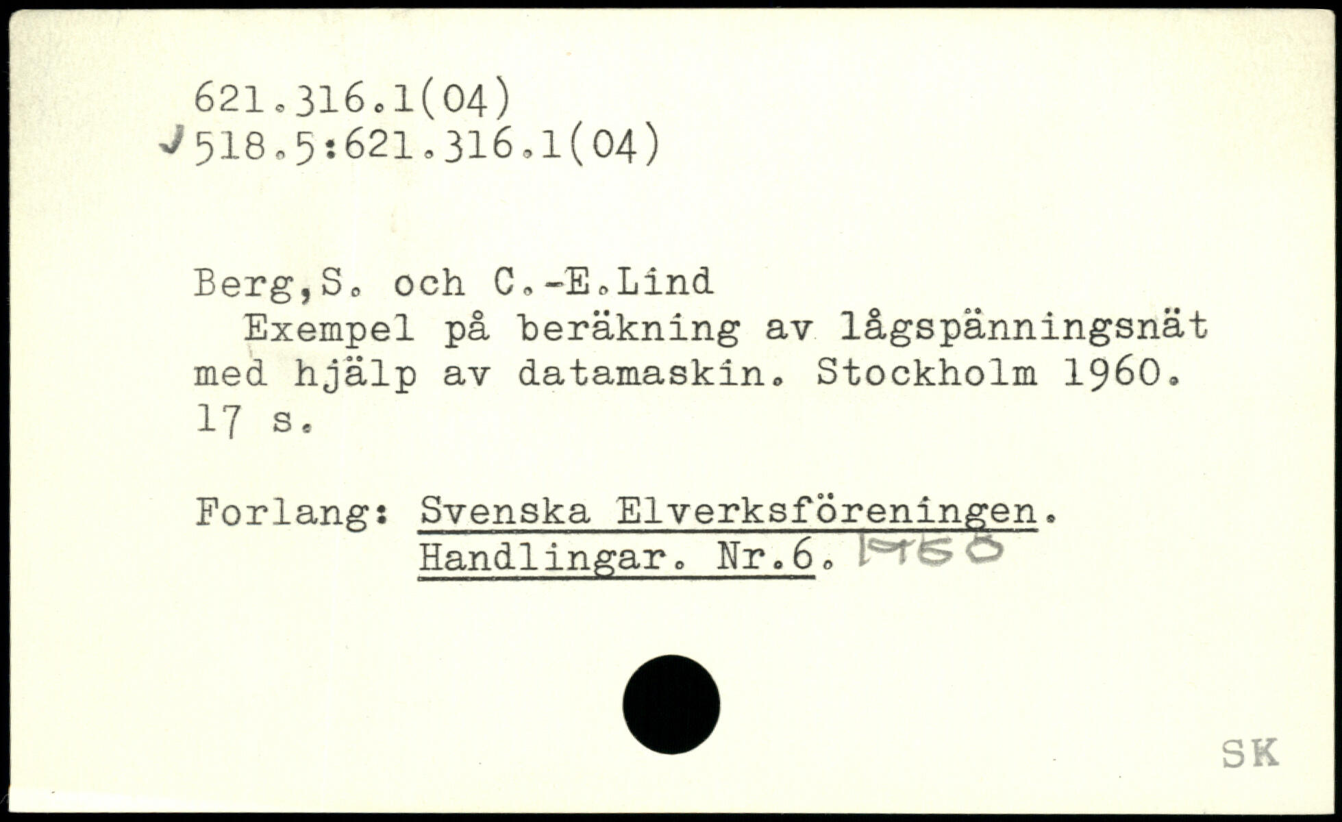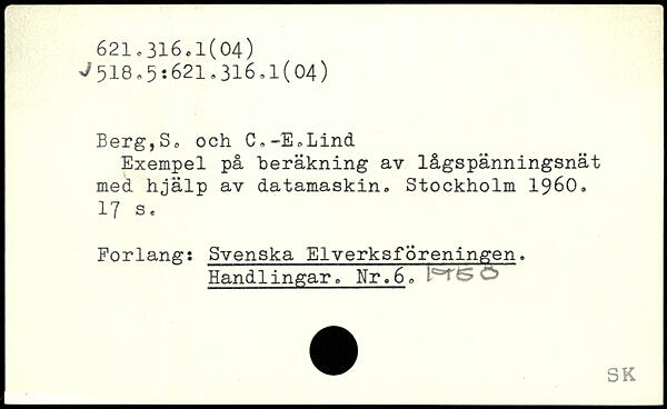 Exempel på Beräkning av lågspänningsnät med hjälp av datamaskin.