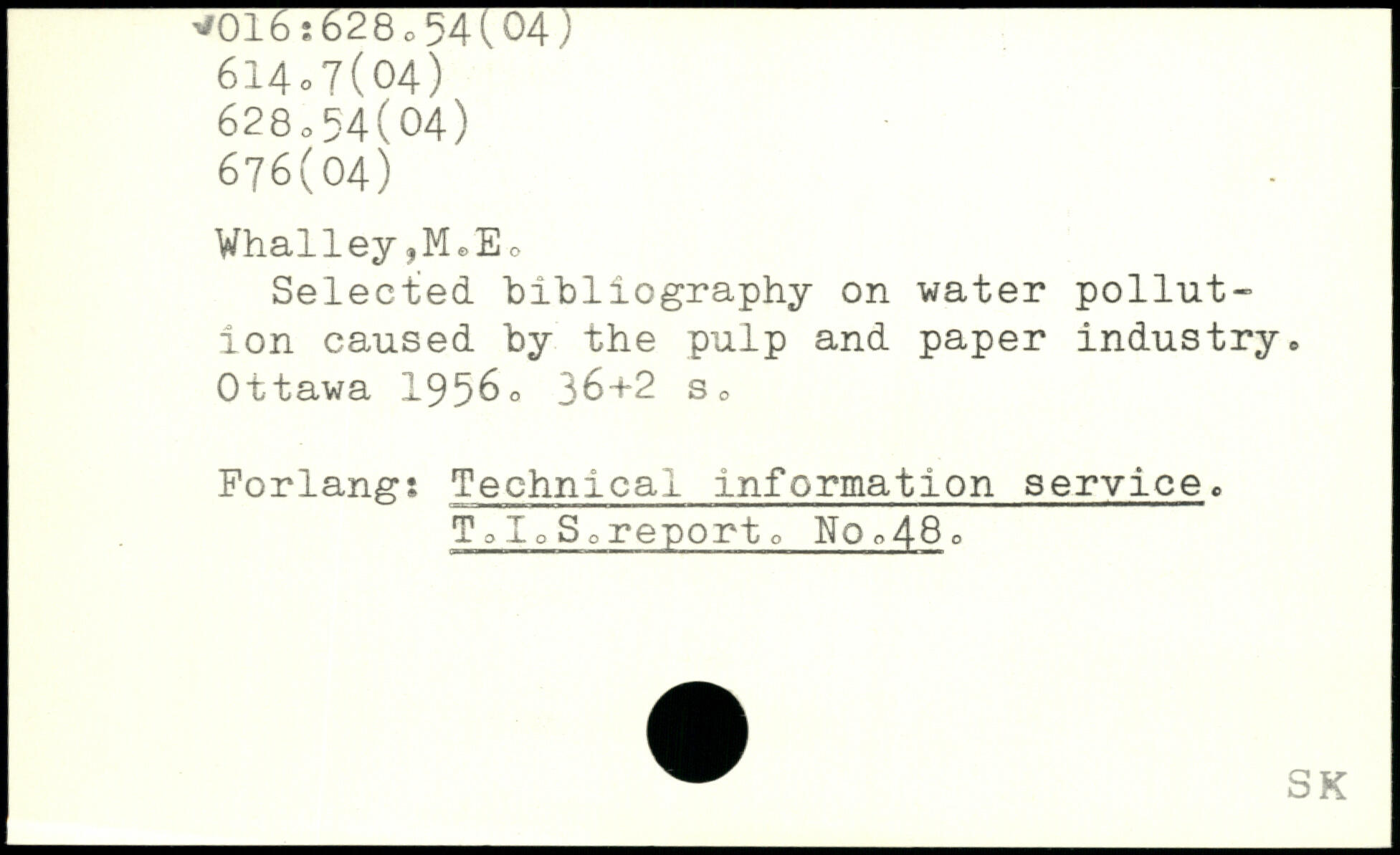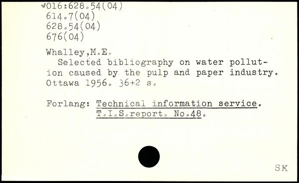 Whalley,MeEo Selected, bibliography on water pollution caused by the pulp and paper industry.