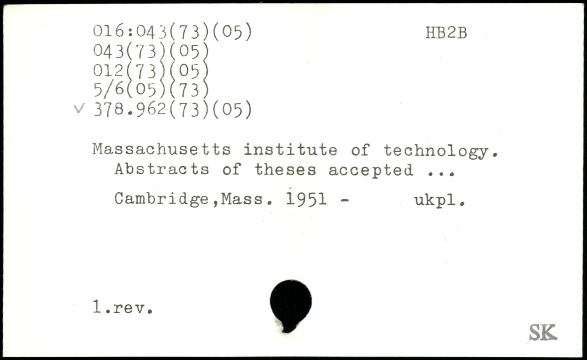 Massachusetts institute of technology. Abstracts of theses accepted ... Cambridge,Mass. 1951 - ukpl. l.rev. ~ SK