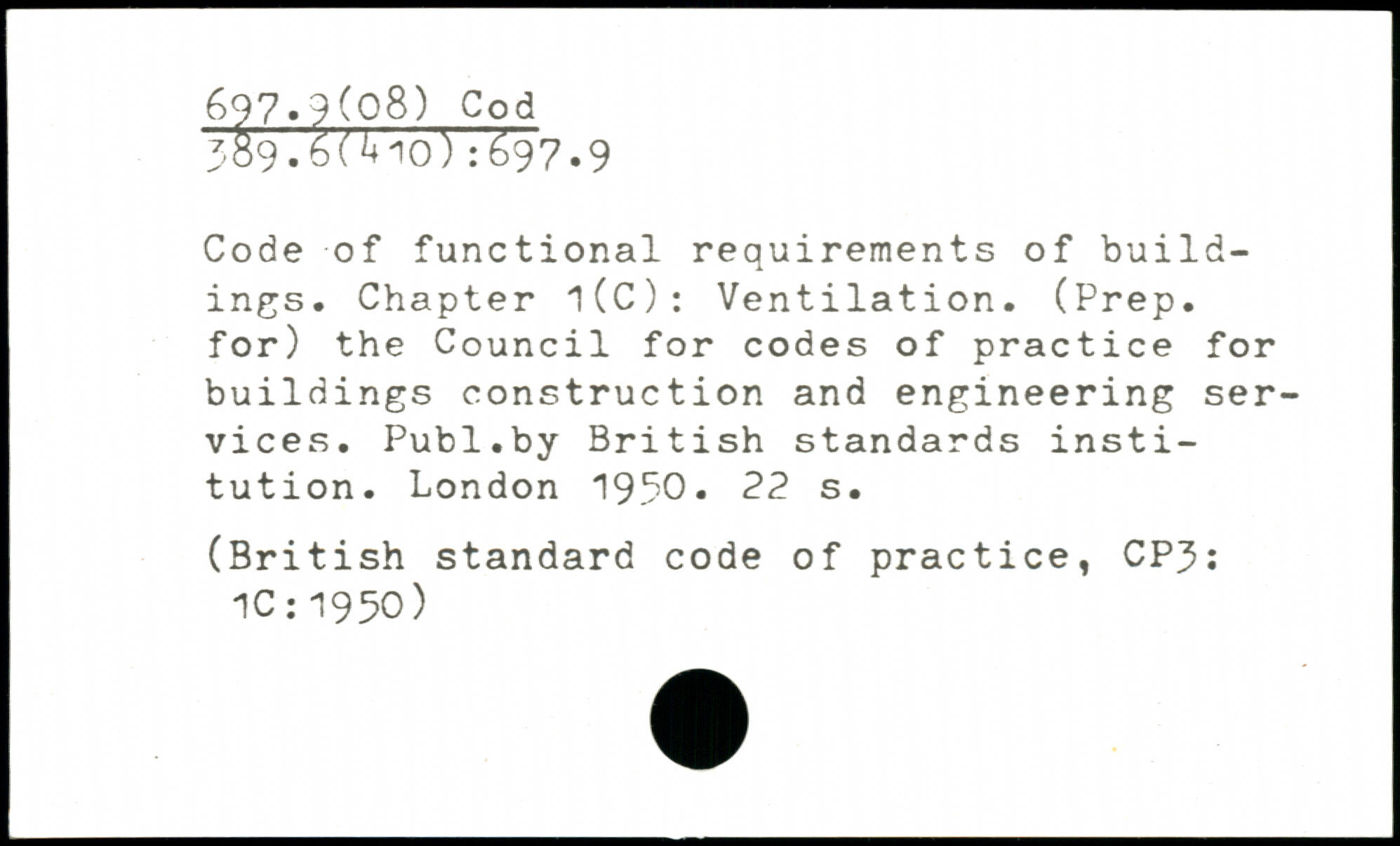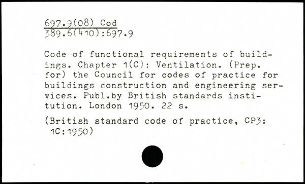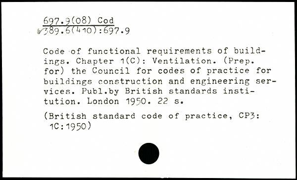 Code of functional requirements of buildings. Chapter 1(C): Ventilation. (Prep, for) the Council for codes of practice for buildings construction and engineering services.