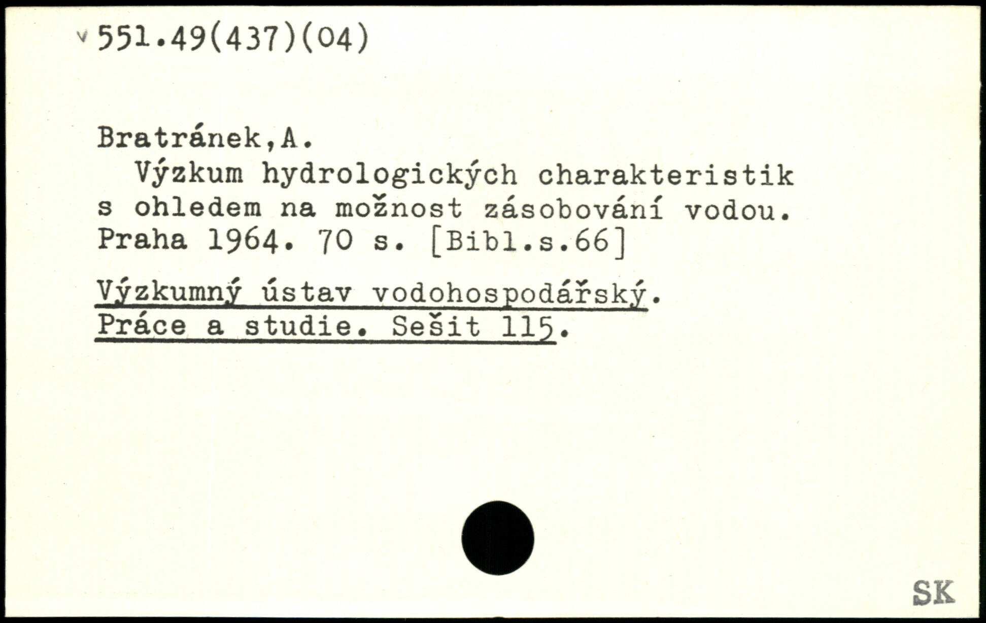 Vyzkum hydrologickych Charakteristik s ohledem na moznost zasoboväni vodou.
