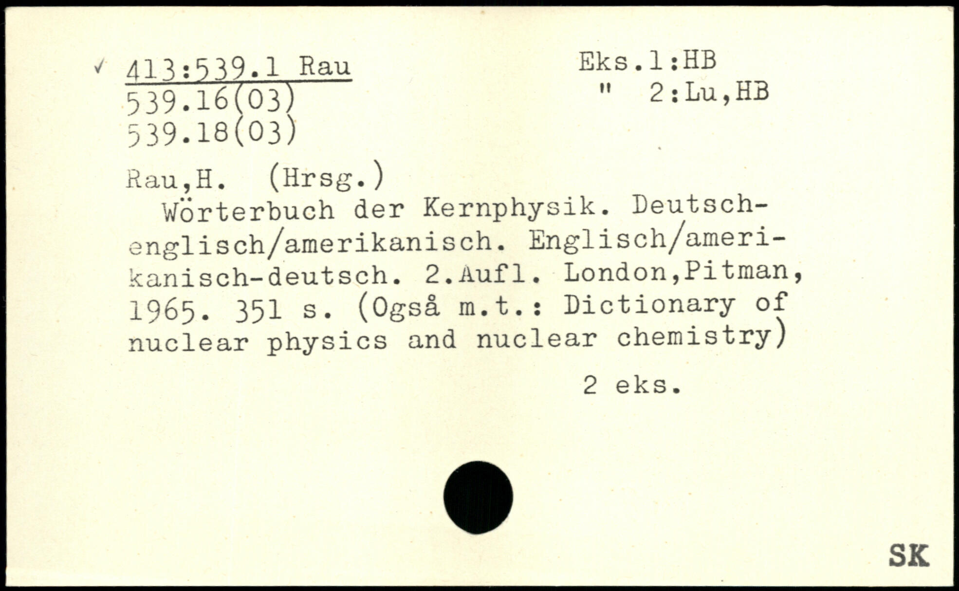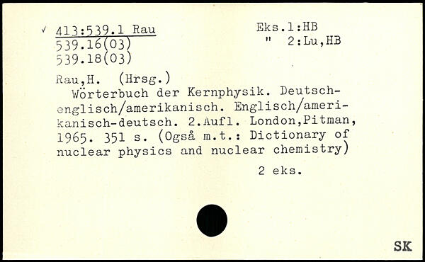 Wörterbuch der Kernphysik. Deutsch-engli s ch/arnerikani sch. Lngli sch/ameri— kanisch-deutsch. 2.Åufl.