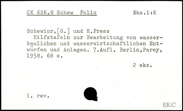 Hilfstafeln zur Bearbeitung von wasserbaulichen und wasserwirtschaftlichen Entwürfen und Anlagen.
