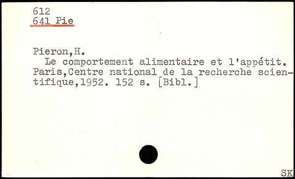 Le comportement alimentaire et l'appétit. Paris,Centre national_de la recherche scientifique, 1952.
