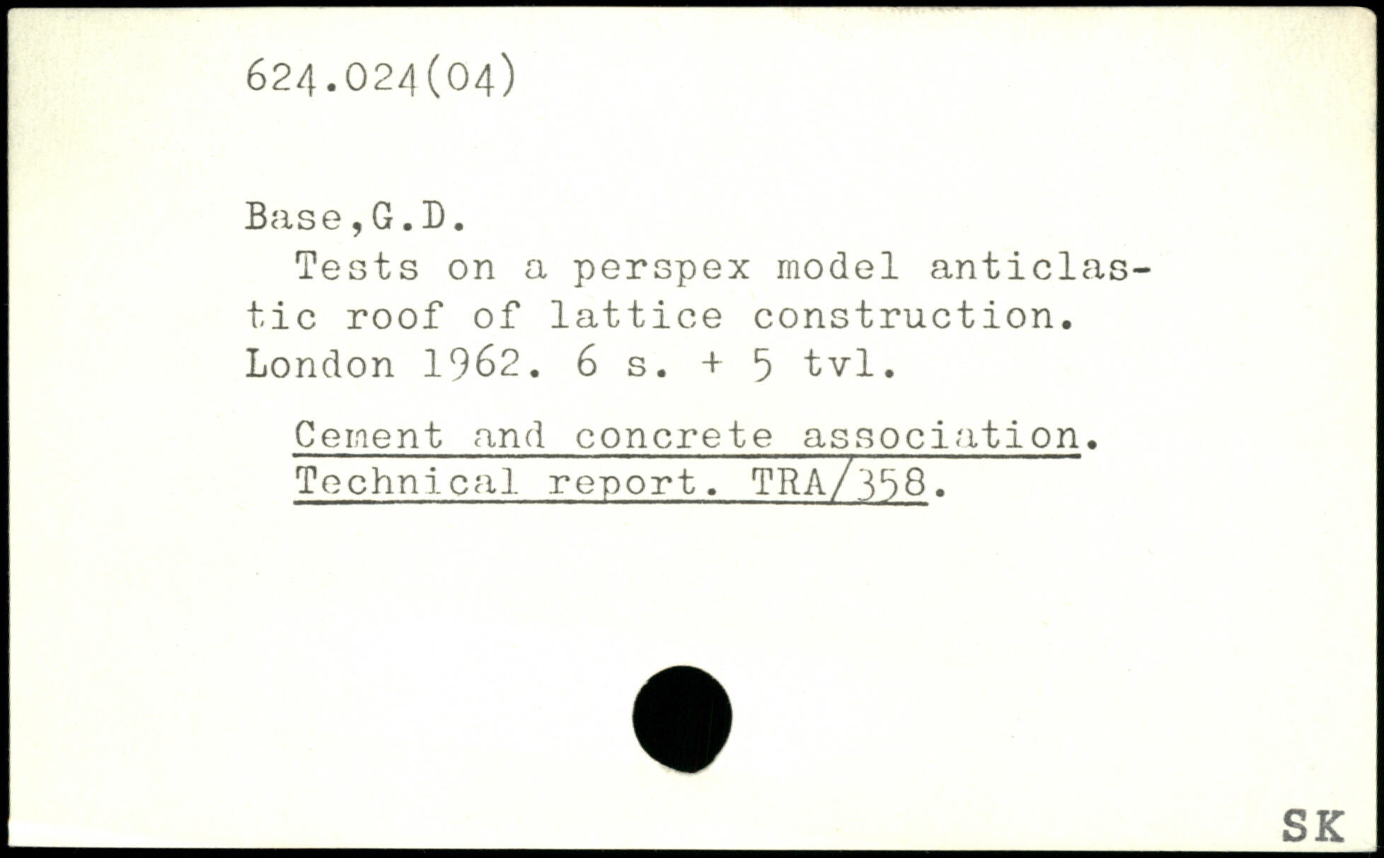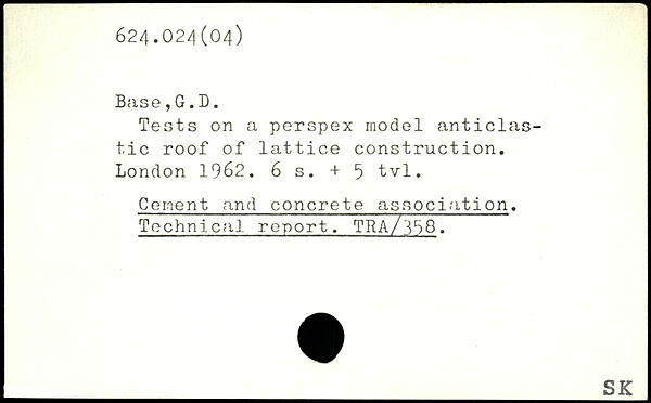 Tests on a perspex model anticlas-tic roof of lattice construction.