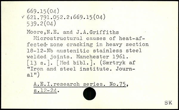 Microstructural causes of heat-affected. zone cracking in heavy section 18-12-Nb austenitic stainless steel welded joints.