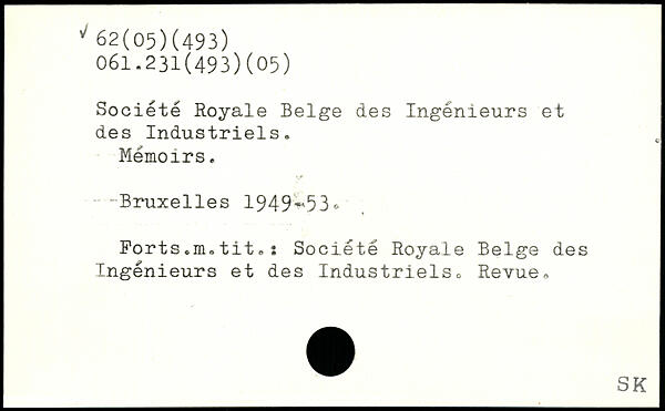 Société Royale Belge des Ingénieurs et des Industriels. Mémoirs. ~