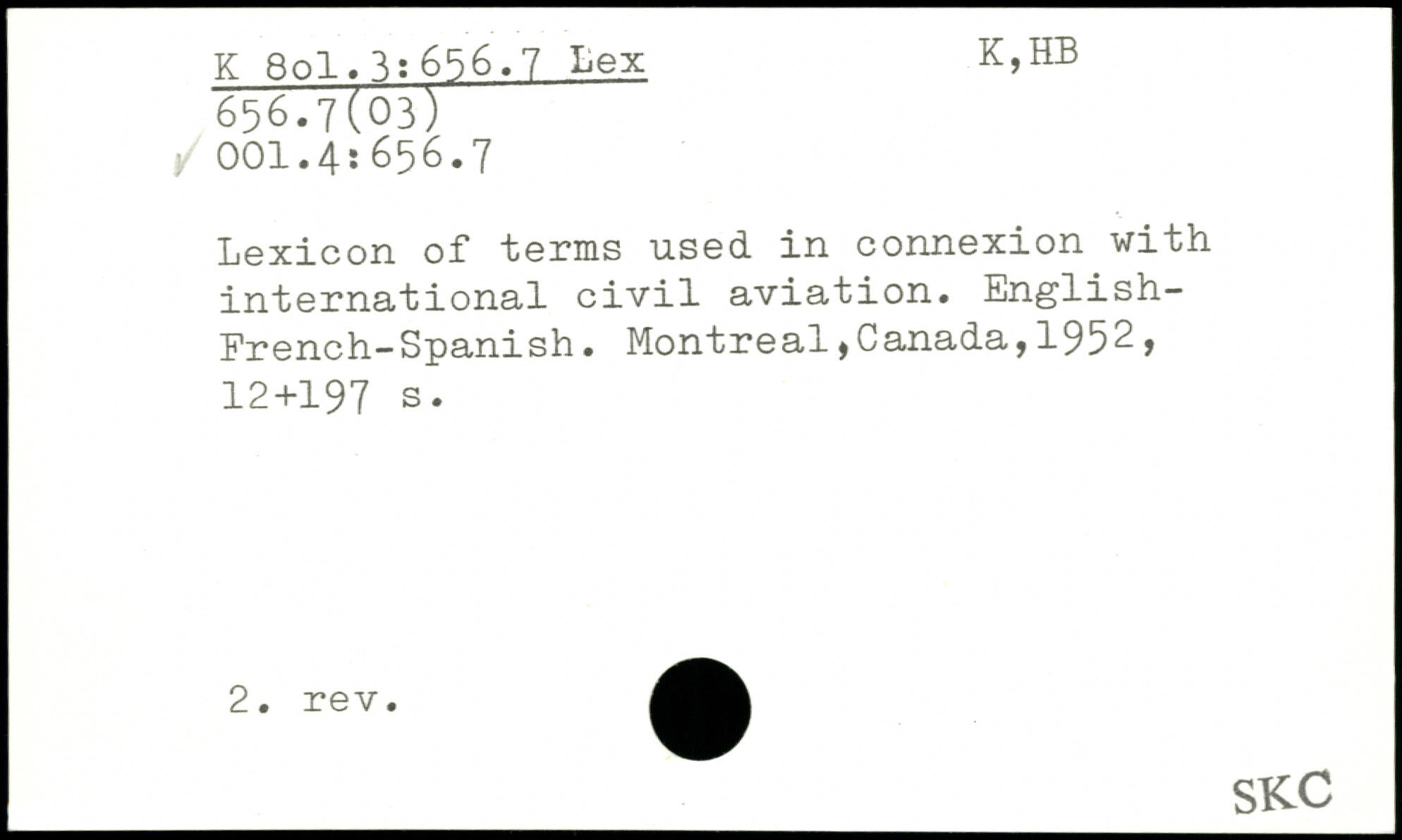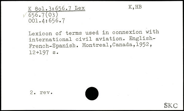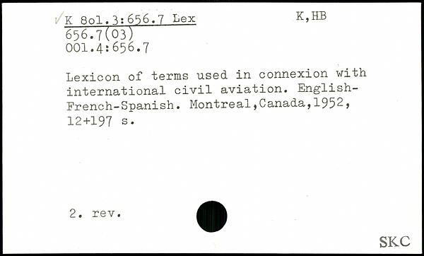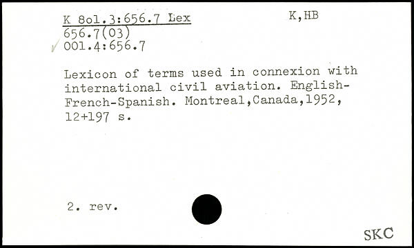 Lexicon of terms used in connexion with international civil aviation. English-French-Spanish.